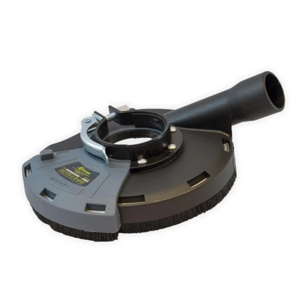 La Cappa di Aspirazione Antipolvere con anello spazzola è progettata per garantire una levigatura senza polvere su superfici come calcestruzzo, massetto e muratura. Grazie al suo design, è compatibile con la maggior parte delle smerigliatrici angolari fino a 125 mm (non adatta alla Bosch GWS 9 con disco da 125 mm).